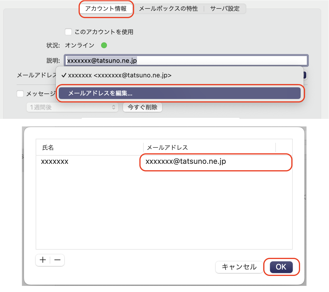 これまで使用されてきた@tatsuno.or.jp は利用できなくなります。よって、新たなドメインに変更する必要があります。